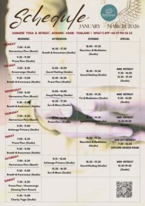MEDITATION / YOGA NIDRA & SOUND : In the class, we start the first 30 minutes with practicing some gentle movement and pranayama, and may have mantra chanting to prepare your mindfulness and awareness to the meditation practice. And in some classes we do the Yoga Nidra as laying down on mat with guided meditation and sound therapy. Then we do the silent sitting mediation about 15-30 minutes, with some guidance at the beginning.